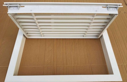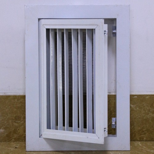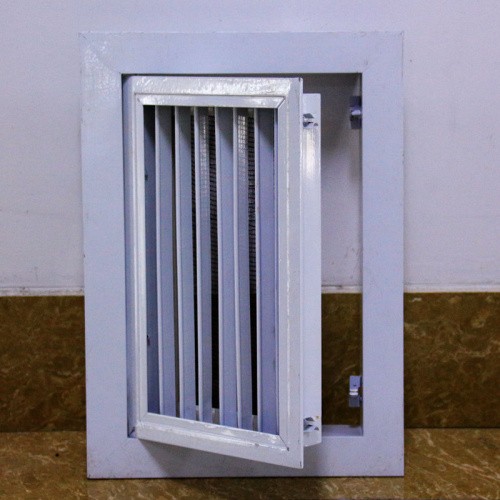 门铰式午夜在线免费视频是固定格栅午夜在线免费视频的派生产品,增加一个可开的内框,使叶片部分为一活动门结构,拨动活动门的门闩即可将活动门打开,便于安装和维修。